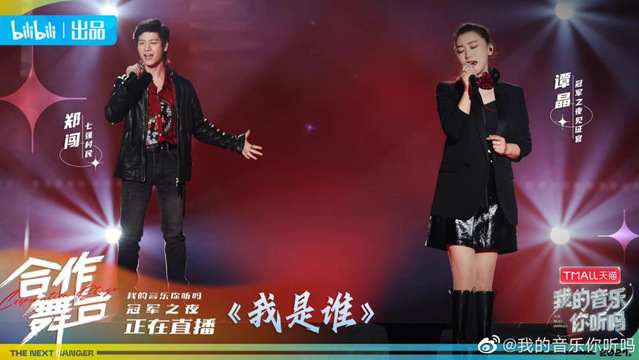 郑闯在《我的音乐你听吗》综艺节目中与见证官谭晶合唱他的同名原创专辑《我是谁》