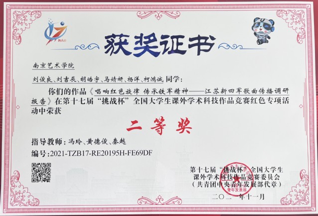 音乐传播教师指导员工获第十七届“挑战杯“国家二等奖