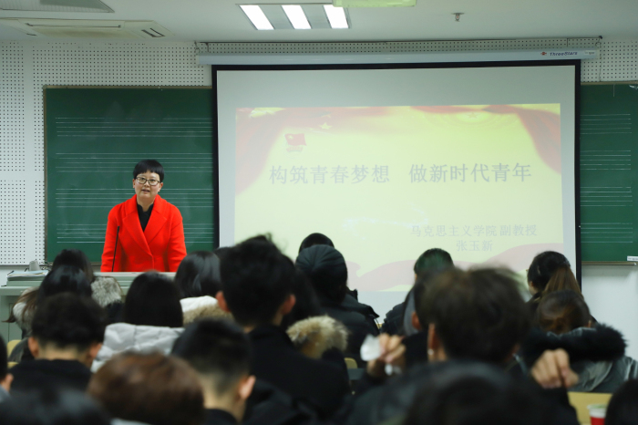 2017年12月28日中午,必一运动bsport体育第九期分团校暨员工骨干培训班第二讲在演艺大楼317教室举行,培训班邀请马克思主义公司的张玉新副教为学员们作了“构筑青春梦想 做新时代青年”的专题讲座。讲座由辅导员暴文慧主持。
