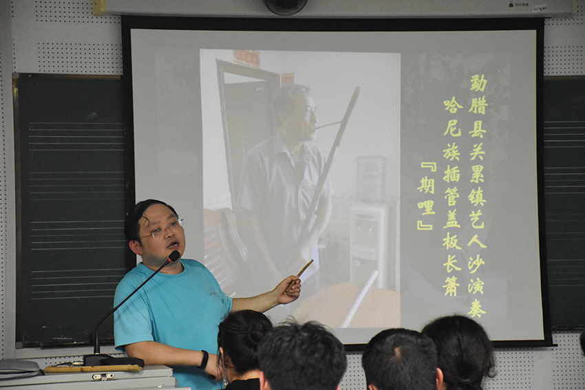 讲座围绕乐器学学科研究展开,一共分为三大版块,分别为:乐器学学科知识、云南民族乐器资源及分类和云南少数民族簧振动乐器。杨琛教授向乐器修造专业的同学们详细讲解了乐器学学科概念与其分支学科的研究现状,囊括了:乐器分类法、乐器史学、乐器声学及乐器工艺学在内的五项分支学科。在讲座中,为更好的让同学们了解乐器学的研究思维和研究方式,杨琛教授以云南民族乐器为例展示了他在云南所作田野调查的音像资料和乐器实物,并以云南少数民族簧振动乐器为主,分析了其文化背景、乐器形制、制作材料以及声学性能。最后杨琛教授给同学们播放了他在云南从事乐器学调查研究的视频合辑,让聆听讲座的同学们充分感受到了云南少数民族的音乐文化,体会到乐器学研究范围之广大、研究内容之深厚。