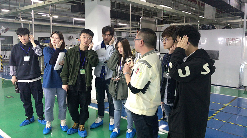 汪部长带领大家详尽地参观了西洋管乐器及打击乐器的生产。管乐器车间采用数控化和人工结合的生产方式以保证乐器的高质量产出,年产量约117000根。同学们见到了雅马哈闻名已久的涂装机器人,以及其先进的静电清洗车间。同学们在参观过程中见到了许多课堂上所了解到的工艺和技术,也认真地和汪部长探讨参观过程中遇到的问题。