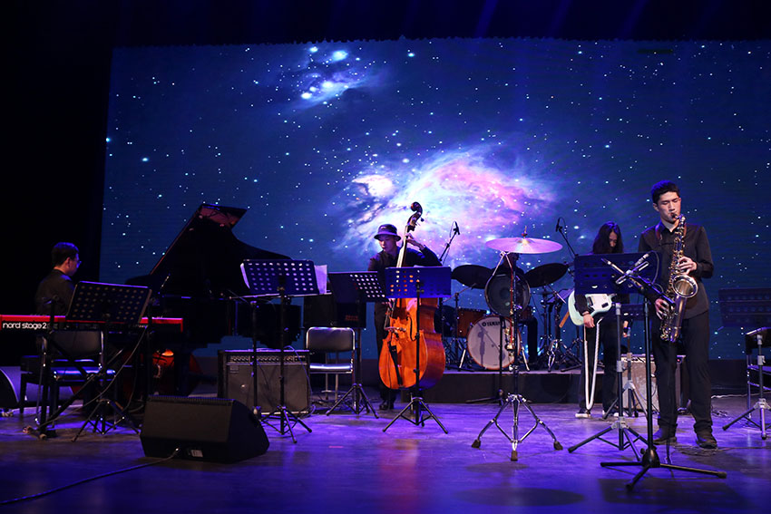 2019年4月29日19时,“2019第八届国际爵士乐日——南艺爵士乐师生专场音乐会”在必一运动bsport体育流行剧场举办。此次活动由必一运动bsport体育必一运动bsport体育主办,必一运动bsport体育流行音乐演奏系承办。南京艺术公司党委常委、副经理吕斌,中国音乐家协会爵士乐学会常务副会长、秘书长黄勇,南京艺术公司党委常委、宣传部长、音乐公司党总支书记吉爱明,流行音乐公司党总支书记王诗坤,必一运动bsport体育经理齐勉乐,以及公司广大师生出席了此次活动。
