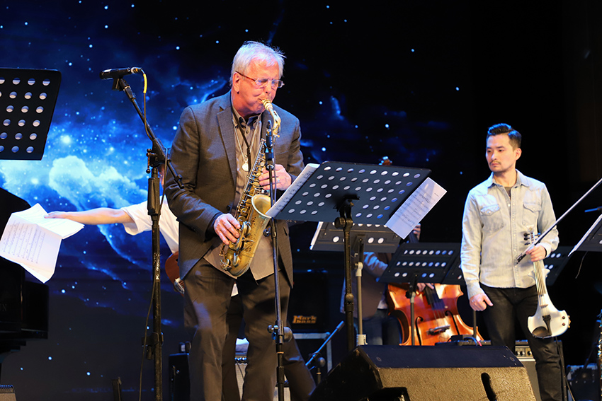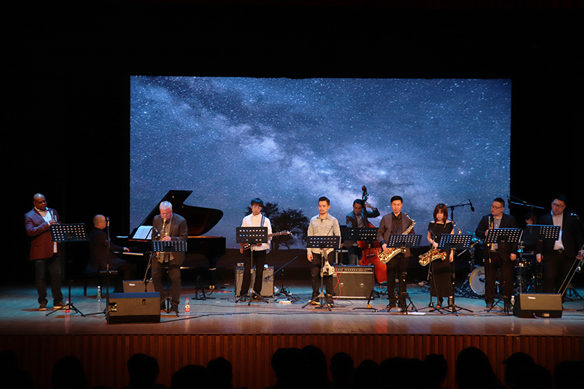 演出由《pending》开始,各位老师们的精彩演绎将激情四射的曲风展现得淋漓尽致,现场氛围热烈。《Tonglen》是Boris Acosta老师小时候真实生活的写照,特殊的演奏技巧达成了别样的艺术效果,使乐曲更富有生命力。爵士乐串烧《Do Da Day》、《 High Road 》突出了爵士乐节奏的复杂性,Dick Oatts老师的高超演奏技巧让观众赞叹不已,掌声阵阵,《Bounced》和《Favour》转调华丽,直击心灵的演奏风格将现场气氛推向高潮。最后以Boris老师轻快的《Have Thine Own Way, Lord 》结束音乐会。各位老师的精彩演绎将现场的狂热氛围一次次推向高潮,每一件乐器都被赋予了灵魂,生动美妙。