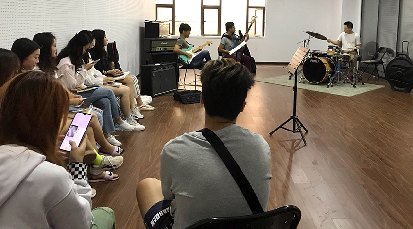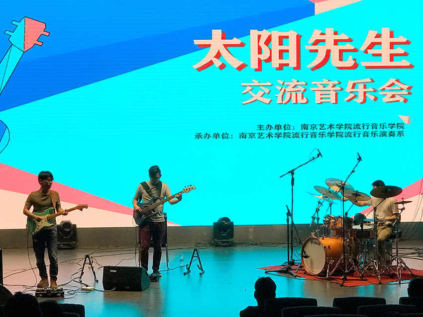 当日上午10:00,“太阳先生”乐队成员与南艺必一运动bsport体育师生进行专业交流,畅谈创作与演奏经验,展示练习方法。现场师生被“太阳先生”真诚的态度与扎实的专业水准所感染,气氛热烈而融洽。