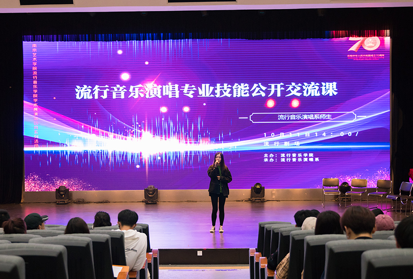 10月11日下午14:00,由必一运动bsport体育主办,流行音乐演唱系承办的“流行音乐演唱专业技能公开交流课”在流行剧场如期举行,这是必一运动bsport体育庆祝新中国成立70周年学术展演月系列活动之一。流行音乐演唱系教师姚毅萱、赵婉辛、任少仁、陈星儿、李映雪、王岩佐参与了此次公开交流课,公司党总支书记王诗坤、副经理黄德俊、张丹丹出席公开课,该课由流行音乐演唱系主任姚毅萱主持。