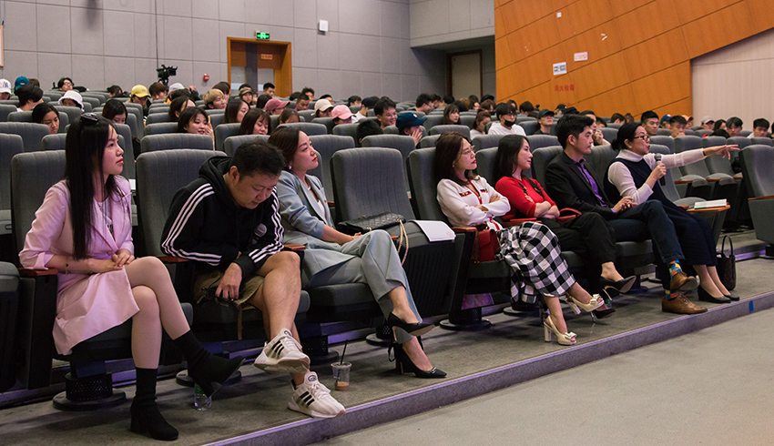 交流会上,几位员工代表先上台演唱歌曲,并向老师汇报自己在流行演唱专业学习过程中遇到的声乐问题,流唱系老师们根据员工现场演唱的曲目纷纷给出自己的解决方案与教学心得。老师们之间的交流扩展了对于原本单一的一对一课程教学的局限和空间,师生相互之间互有启发。这种形式对于流行音乐演唱技能的各种方法手段有了更好的补充,对于不同声音与审美有了更全面的认识。公开交流的教学方式不仅给台下的员工起到了示范和引导的作用,同时让流唱系老师之间对于流行演唱专业也有了更深入的沟通,让全体参与活动的人领略了流行演唱系师生的教学风采与成效。