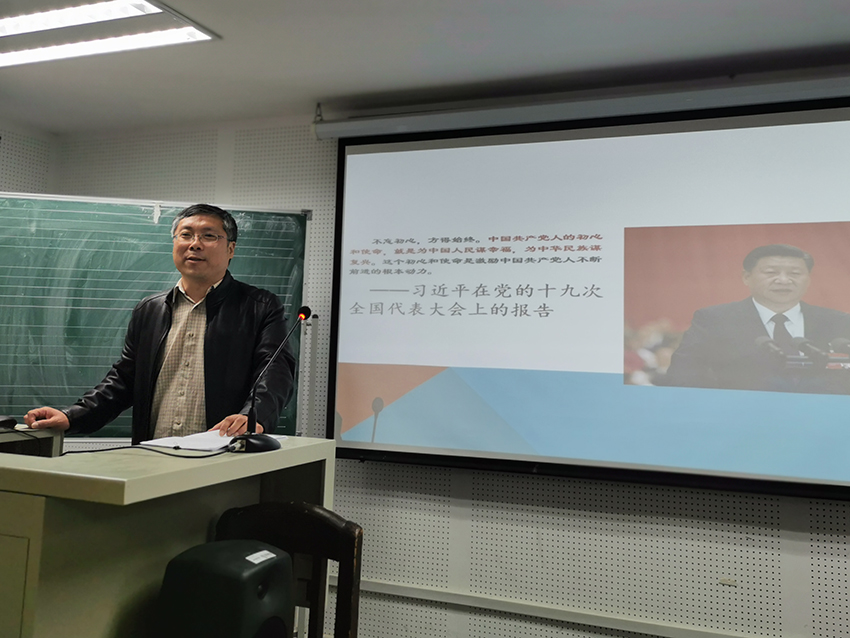 王诗坤书记专题党课从中国共产党人初心确立的条件、党的历史就是中国共产党人坚持和践行初心与使命的历史、中国共产党人的初心决定中国共产党人的使命三个方面,结合历史进程中的重大事件对中国共产党人初心的核心要义、历史渊源、践行路径、现实意义、未来使命等作了生动、全面、深入、细致的分析和解读。王诗坤书记强调,在当前社会历史条件下,无论教师党员还是员工,一定要认真审视自己是否坚守了初心、践行了使命,深刻反思找差距,努力提升自身修为,在新的历史方位中找准践行初心的正确路径,积极担负起伟大的使命,全心全意为人民服务,做合格的党员。