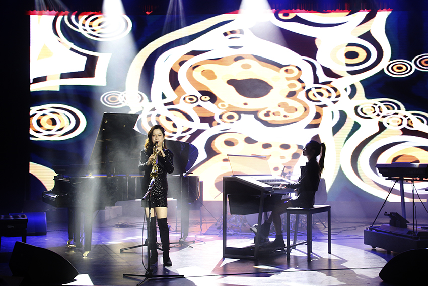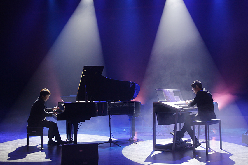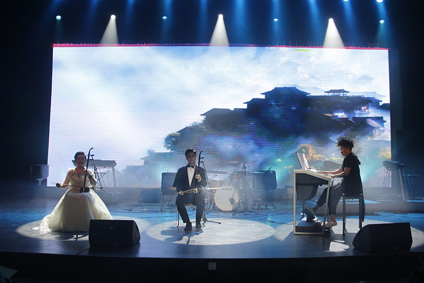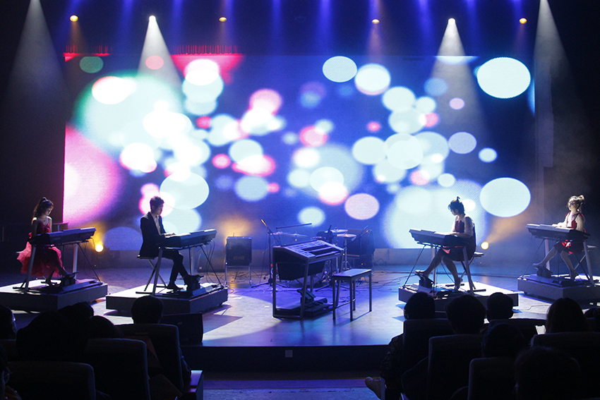 2018级双排键专业的四位同学首先以一首热情洋溢的双排键四重奏《JOY TO YOU》拉开音乐会的序幕。接下来的节目形式多样、精彩纷呈:杨婷婷老师与谷雨晴同学共同演奏双排键合奏《IPHONE》,形象地描绘出快节奏的现代生活;2018级宣昱辰同学用双排键诠释了德彪西管弦乐作品《大海》第三乐章《风与海的对话》,映像派音乐独特的丰富音响色彩让人眼前一亮;2016级汪子超同学与朱曼歌同学的双排键二重奏《DRIVING POWER》,运用电吉他效果模拟公路机车飞驰;可谓酣畅淋漓;黄岑老师与宣昱辰同学通过钢琴与双排键协奏演绎拉赫玛尼诺夫《帕格尼尼主题狂想曲》,传达出一种凝固在旋律之下深沉的、永不褪色的俄罗斯忧郁;瞿奕敏老师与2018届毕业生高金君用“萨克斯+双排键”的组合,共同带来日本大濑户千嶋组合欢快热情的金曲《CARISH》;2017级赵妤涵、刘宇纯、王晶琪三位同学为大家带来现代电子乐遇上经典的《波莱罗舞曲》,台风靓丽,青春洋溢;2018级流行音乐演唱的印林昊同学与双排键带来电影《卑鄙的我》中的经典插曲《HAPPY》;特邀江苏省戏剧公司二胡演奏家、教育家胡丹老师、以及荣获国内外多项大奖的章梓洋同学共同与黄丽媛老师带来二胡与双排键协奏《楚颂》,大气磅礴的旋律如同历史的长河般绵延不绝。音乐会临近尾声,黄丽媛老师联合薛晓论老师、闵艺老师共同献上爵士乐三重奏《I WISH》,将音乐会推向高潮。
