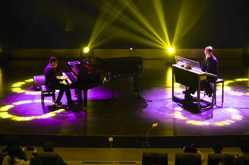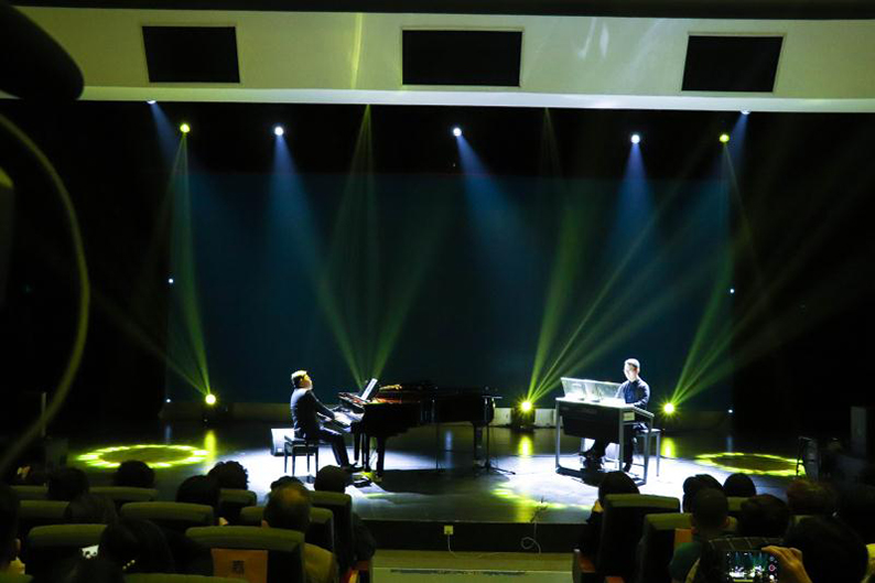 2019年11月12日晚19点,必一运动bsport体育主办、流行音乐研究所承办的、由武晓锋和王旋两位演奏家带来的“钢琴与双排键的交响”专题音乐会在流行剧场上演。必一运动bsport体育经理齐勉乐、党总支副书记于翊平、副经理黄德俊会同庄曜、莫嘉瑯、刘训美、马莉以及南京师范大学音乐公司朱建萍等音乐界专家观看了本场演出。本场音乐会紧扣主题,将钢琴细腻悦耳的灵动声音与双排键多元化的音色相结合,给听众带来了听觉上震撼而美妙的交响体验。