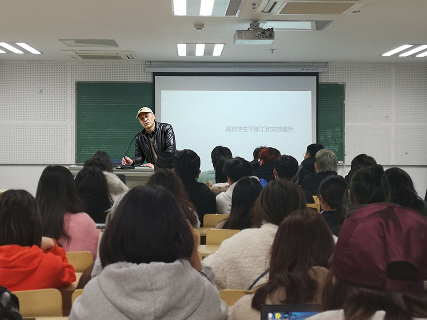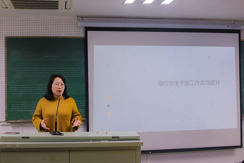 关工委常务副主任何敏文老师在讲座前对员工干部提出几点要求:一是员工干部要有担当敢作为,强化责任意识,充分发挥模范带头作用;二是要把学习放在首位,处理好工作与学习的关系,做好同学与老师之间的桥梁和纽带;三是要杜绝不良风气,各部门之间多沟通、互帮互助,营造良好校园。