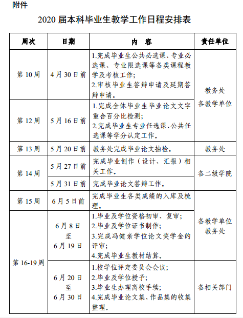 为确保员工不因疫情影响学业和毕业,根据教育部、省委省政府、省教育厅有关部署和要求,及《关于进一步做好疫情防控和开学准备工作的通知》(南艺委发〔2020〕 7 号)《关于做好 2020 届本科毕业生在线教学工作的通知》(南艺院发〔2020〕 19 号)等文件精神,现将公司 2020 届本科毕业生有关工作安排通知如下,请各二级公司、各相关部门高度重视,精心组织、缜密安排、统一协调、认真落实,全面做好毕业生资格审查与离校相关工作。