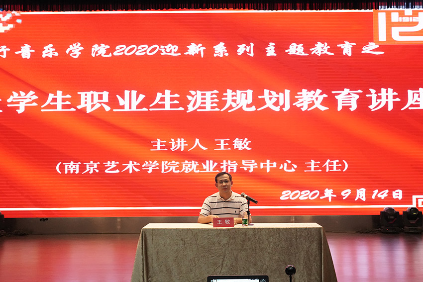 王敏老师首先围绕“为什么考大学,选择现有的专业?”与同学们展开互动问答。同学们积极参与,纷纷表达了自己的报考南艺的初衷及入校之后的展望。随后,王敏老师结合案例向新生生动地讲解了大学四年不同的阶段应该努力要做的事情、避免去做的事情、一定不要做的事情。王老师建议新同学在大学第一年要积极调整身心状态,适应新的学习生活,认真探索个人职业发展方向,初步了解相关职业,在大学四年当中一定要有意识地提高人际沟通能力、专业实践能力、团队协作能力、挫折应对能力等职业素养,做好职业生涯规划,找对实现职业生涯发展的有效路径和方法,为未来职业生涯的可持续发展做好充分准备。