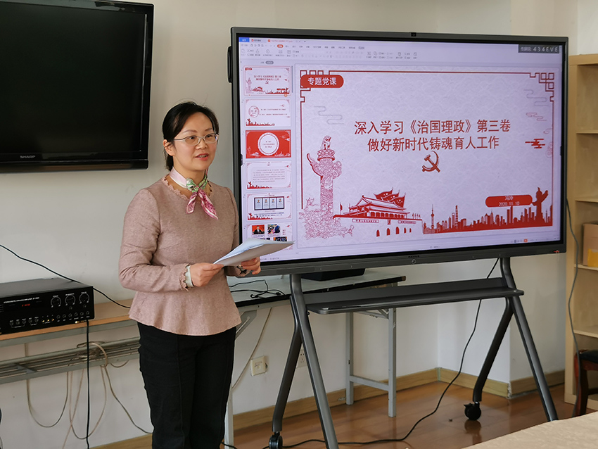 2020年11月11日下午2点,流行音乐公司党总支教工党支部在演艺教学大楼六楼会议室开展了“深入学习《习近平谈治国理政》第三卷,做好新时代铸魂育人工作”专题党课的学习,学习由流行音乐公司党总支教工党支部书记冯玲同志主讲。