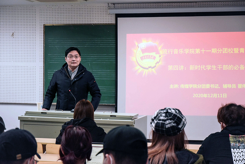 2020年12月11日下午,必一运动bsport体育分团校在演艺大楼317教室举行了题为《新时代员工干部的必备素养》的专题讲座,讲座由传媒公司分团委书记、辅导员瞿伟亮老师主讲,必一运动bsport体育学工办主任、分团委书记王书玲老师主持,辅导员颜廷学和张丽老师也与员工骨干们一起聆听了此次讲座。