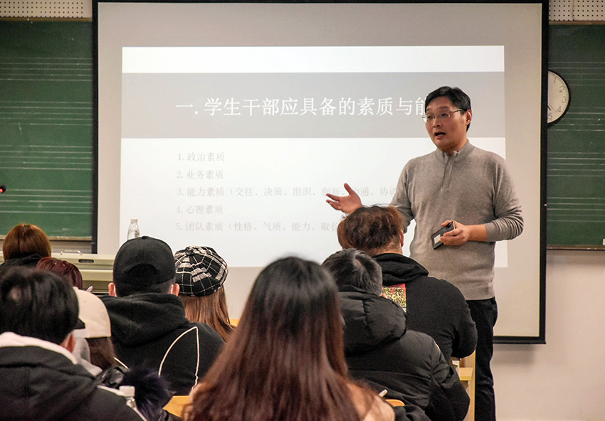 讲座最后,瞿老师提到,作为一名员工干部可能会遇到很多困难、受到不少委屈,所以工作要有计划、学习处理问题的方式方法,调整好心态,认真处理好学习与工作的关系。对于一些同学们工作中经常遇到的问题,瞿老师给予了相应的指导和建议,并鼓励大家克服困难,不断学习充实积累,做一位全面发展的优秀员工干部。