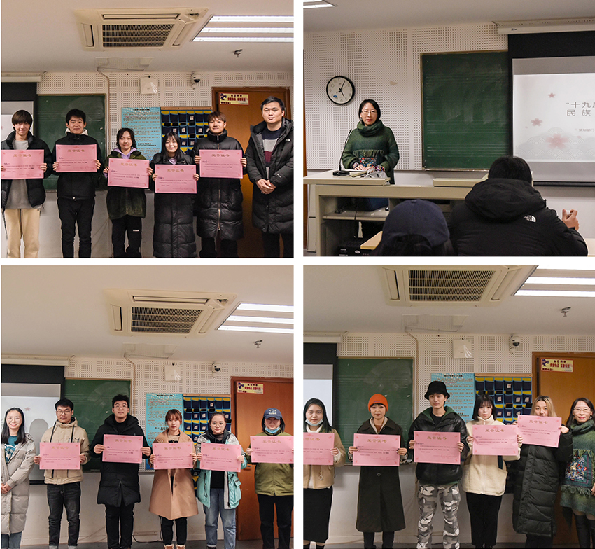 本次知识竞赛内容包括我国少数民族的传统文化知识和十九届五中全会精神的知识点,设置了选择题、填空题、判断题、问答题等题型,并由“通文答义”、“妙演横生”、“应对入流”、“拍铃叫绝”四个环节组成。参加竞赛的同学共分为五个小组进行。五个小组竞争激烈,难分伯仲,在收尾阶段更是打出了“拍铃叫绝”加时赛,最终决出一、二、三等奖。