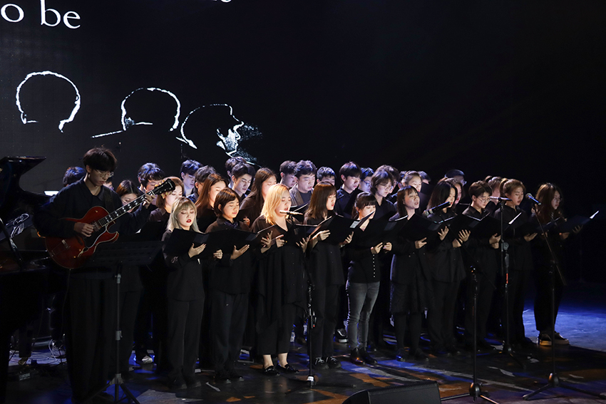 结合基础教学部的教学特点,本次汇报表演以合唱为主要表演形式,共为大家呈现了八首风格各异的音乐作品。有阿卡贝拉形式,有弹唱与合唱形式,有钢琴伴奏合唱以及流行乐队表演等形式。整台节目中,既有任课教师精心给授课班级员工排练的阿卡贝拉,也有师生同台表演的阿卡贝拉形式,有教师指导员工创作的多声部作品,以及教师与员工组成的乐队表演等等。整台汇报演出充分展示了基础教学部的教学成果。其中,音乐公司的四位视唱练耳专业的硕士研究生也首次加盟了本场流院的汇报演出,不但丰富了演出内容,而且还充分促进了同为音乐学科的视唱练耳课程教学的交流。