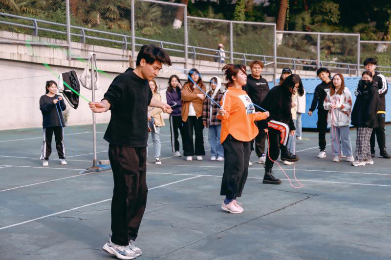 本次素质拓展活动形式为跳绳友谊赛,老师们为同学们赛前打气,希望同学们取得体质上和成绩上的双重胜利。本次素质拓展活动的检录员、计时员、记录员和裁判员均由学员担任,让同学们能更好地融入活动中,体验不同的乐趣。跳绳比赛以小组的形式进行,共分为四个小组,每组十至十二名学员组成,由组长根据比赛的要求,选派组员并带领本小组与其他小组进行单人、多人和小组的比拼。整个活动中,同学们热情高涨、激情澎湃,拼劲全力为团队荣誉而战。最终,比赛在全体学员的欢呼声中圆满结束。