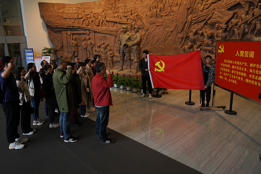 党员们在黄桥战议纪念馆重温入党誓词
