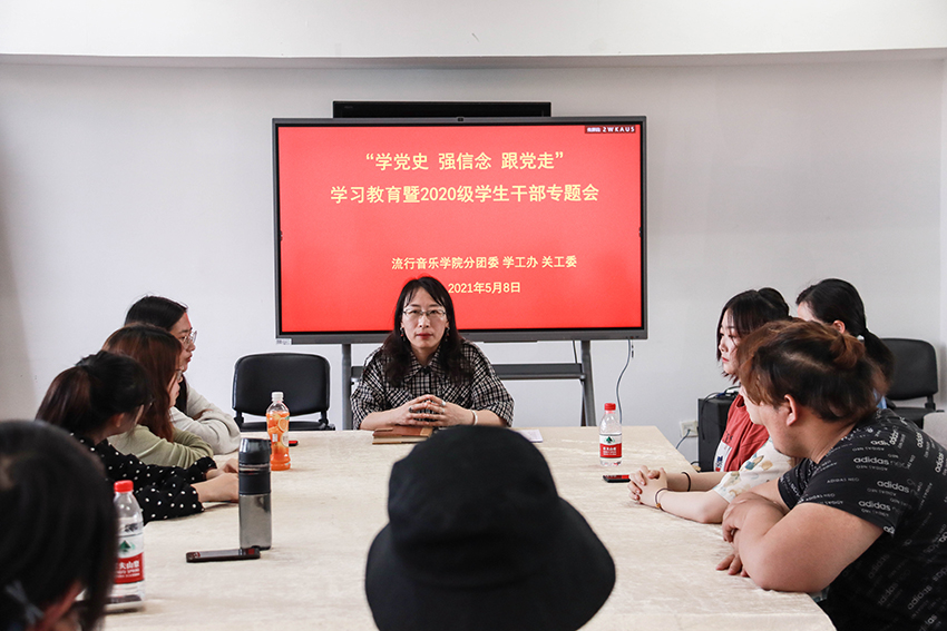 2021年5月8日下午,必一运动bsport体育分团委、学工办、关工委组织2020级员工骨干在在演艺大楼六楼会议室召开了必一运动bsport体育“学党史强信念跟党走”学习教育暨2020级员工干部专题会,必一运动bsport体育学工办主任、分团委书记、2020级辅导员王书玲老师与20名员工干部一起参加了会议。