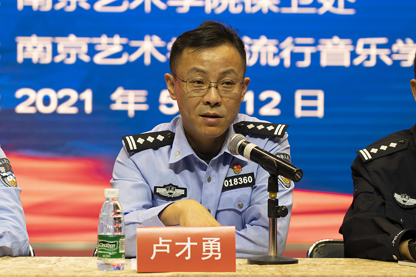 出席本次主题活动的有南京市公安局内保支队副支队长卢才勇警官、南京市公安局刑侦局八大队大队长吴强警官、内保支队校园安全保卫大队副大队长朱楠警官与一级警长章晓冬警官、南京市公安局鼓楼分局内保大队于金芳警官与副队长李辉警官、宁海路派出所顾华警官。必一运动bsport体育流行音乐公司党总支书记王诗坤、党总支副书记于翊平也出席了本次活动。活动由必一运动bsport体育保卫处处长丁怡主持。必一运动bsport体育200余名师生参加了活动并聆听了专题讲座。