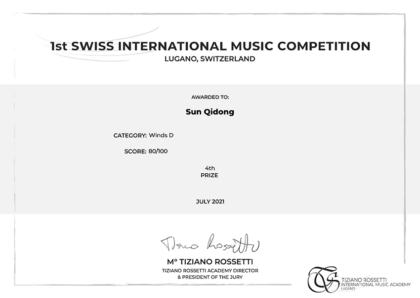 本次大赛由瑞士国际文化艺术公司主办,因新冠疫情履行受限,该项赛事采用在线方式进行,选手录制视屏报送组委会参赛。比赛评委会主席、国际知名钢琴演奏家迪兹雅诺·罗塞蒂先生指出:本次大赛旨在鼓励音乐文化的发展,希望为来自世界各地的有前途的音乐家提供机会展示他们日常学习的成果。