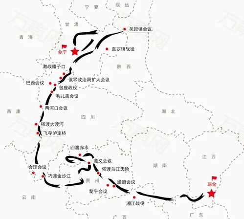 1934年,第五次反“围剿”失败后,中央主力红军为摆脱国民党军队的包围追击,被迫实行战略性转移,于10月退出中央根据地,进行长征。同年11月和次年4月,红二十五军和红四方面军分别开始长征。1935年10月中央红军到达陕北,与陕北红军胜利会师。1936年10月,红二、四方面军到达甘肃会宁地区,同红一方面军会师。红军三大主力会师,标志着万里长征的胜利结束。