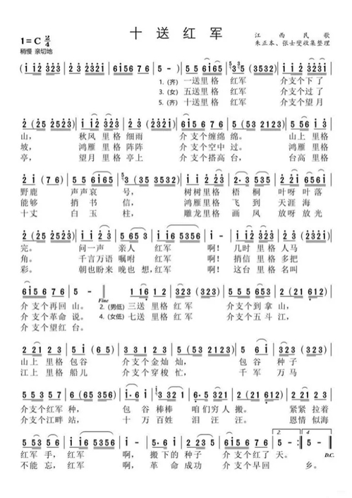 这是一首自20世纪60年代就在中国大地上广为流传的红色经典歌曲;它的原型是曾经流传在川陕根据地的一首陕南歌谣《十送》;它曾在1961年,由解放军空军文工团演唱后享誉全国,后在90年代,全国掀起传唱红色革命歌曲的浪潮中再次广泛流传;它以优美的曲调、质朴的歌词受到群众喜爱,因而被多次搬上舞台,被用作电影、电视剧插曲,还被许多歌唱家选作独唱曲目……本期让我们一起来感受这首经典红歌《十送红军》。