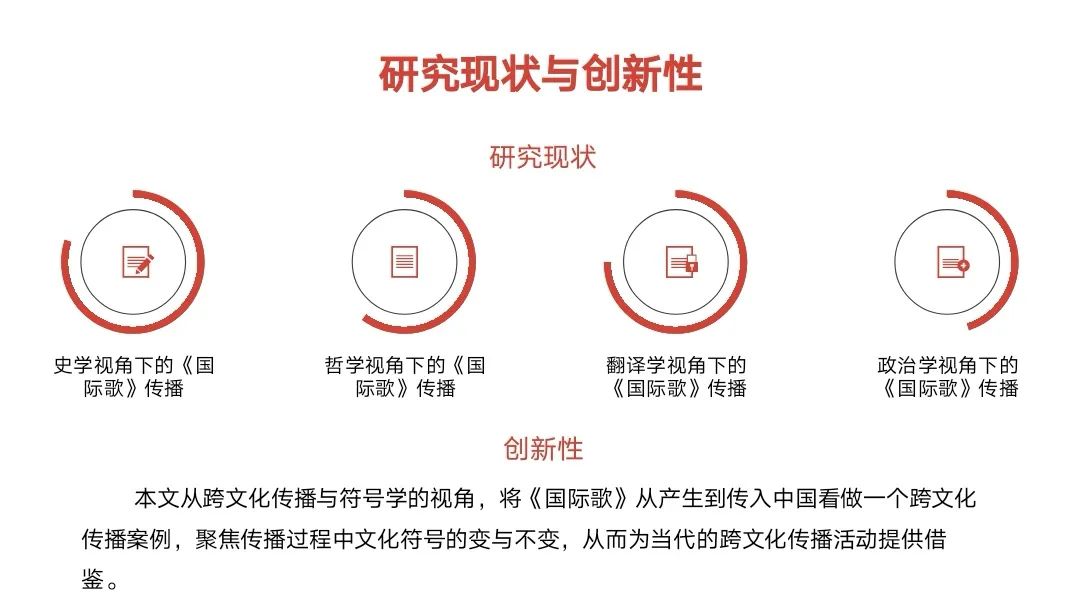 马婧妍认为,正值巴黎公社150周年和中国共产党成立100周年,对《国际歌》在中国的传播进行研究不仅是对无产阶级先辈伟大实践的致敬,更是对‘一带一路’倡议推进和‘大国形象’树立背景下中国跨文化传播活动的有益思考。