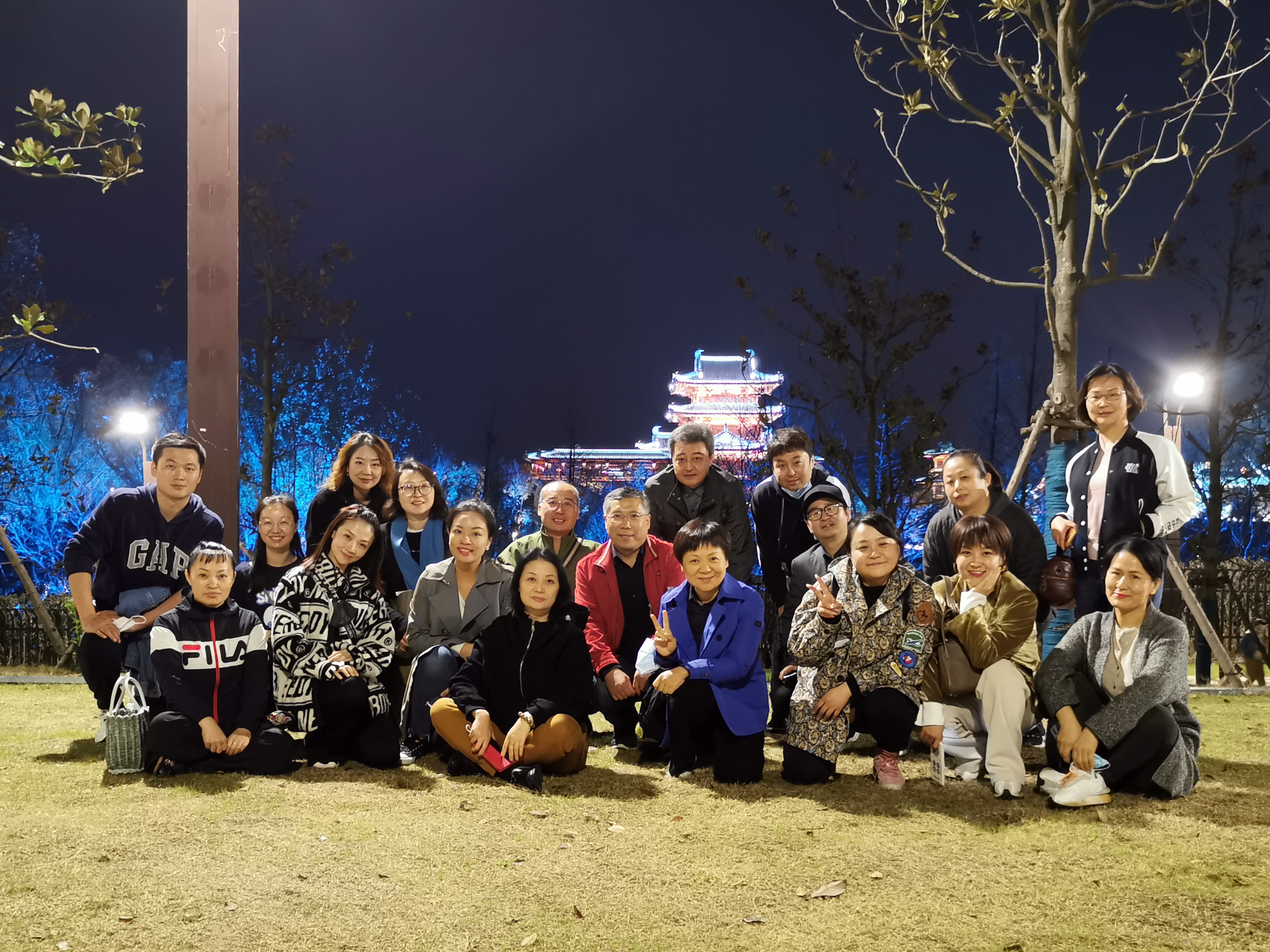 晚饭后,老师们来到牛首山旁边的金陵小城参观夜景,金陵小城是牛首山文旅功能配套区的核心区。大家漫步小城,如同走入一幅山水长卷。晚上灯光的互动表演效果惊艳,灯光璀璨,流光溢彩。灯光设置有动有静,动静结合,相得益彰,令人犹如身处诗里梦里一般。