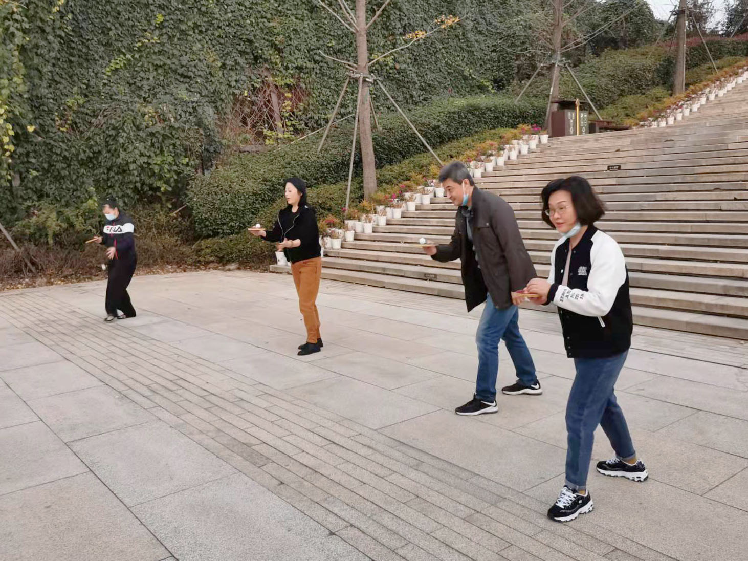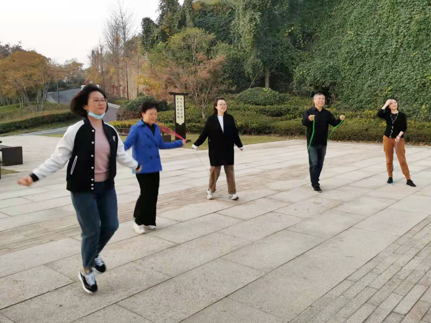此外,老师们还在景区空地上进行了健身趣味活动,如跳绳、打羽毛球、端乒乓球跑等。在热烈、欢笑的氛围中完成了各项活动。