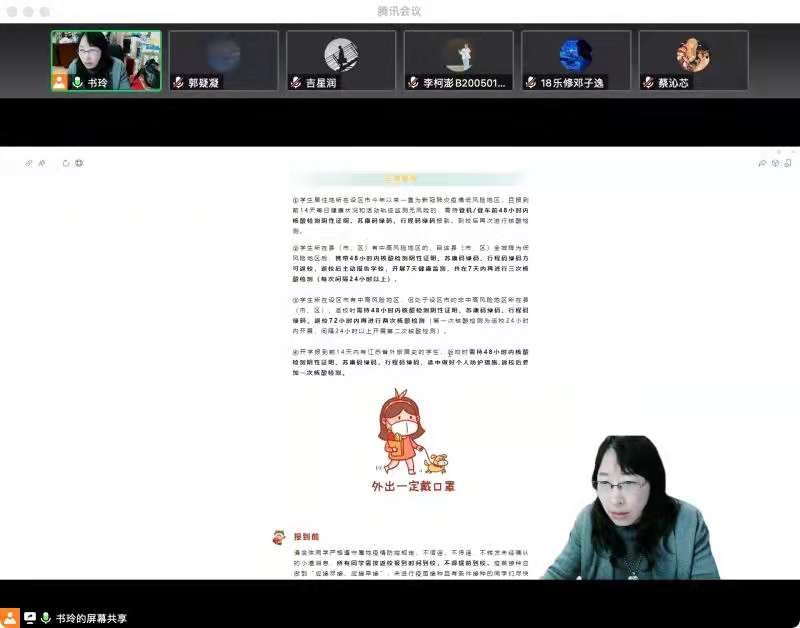 王书玲老师传达了校学工处关于新学期员工返校工作会议的精神,并带领员工骨干认真研读了《必一运动bsport体育2022年春季学期公司返校注意事项》和《关于2022年春季学期员工返校事宜的补充通知》,就新学期开学报到日程安排、返校注意事项、日常防控要求、突发事件处理等几个方面进行了详细解读与说明。与此同时,王老师对寒假期间员工干部线上工作情况作了简要总结,对工作积极认真、准时高效的员工干部提出了表扬。王老师希望员工干部们要提高政治站位,提高工作主动性,创新工作路径,提高自身的执行力、凝聚力、组织力,凝聚团队力量,共同成长进步。