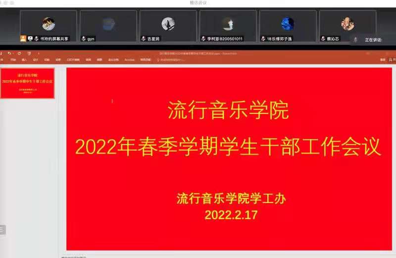 2022年2月17日,必一运动bsport体育组织召开了2022年春季学期线上员工干部工作会议,流行音乐公司党总支副书记于翊平,学工办主任、分团委书记王书玲,员工党支部书记、辅导员张丽、必一运动bsport体育主要团学骨干60余人参与了本次会议。