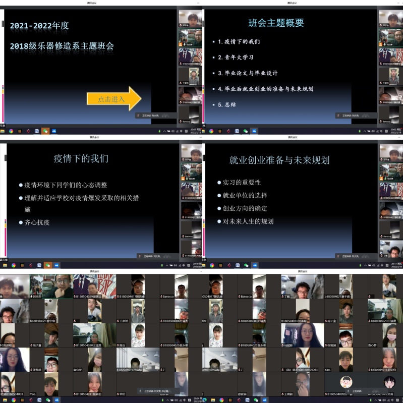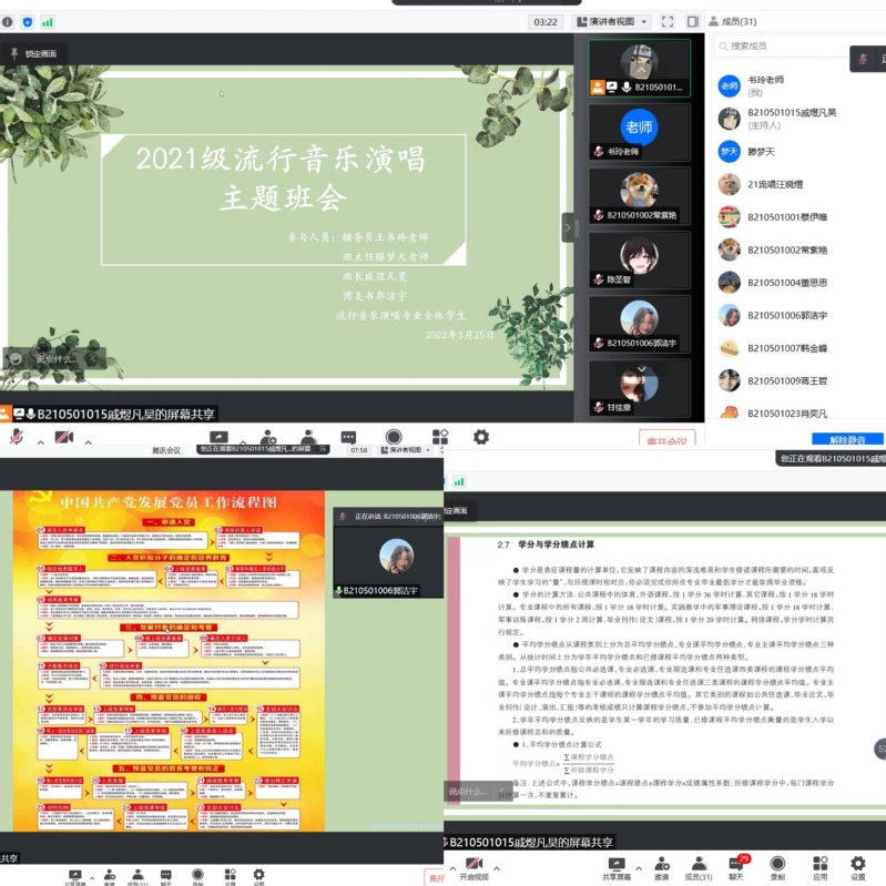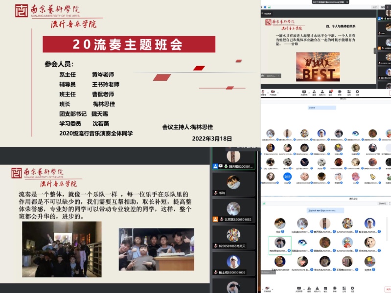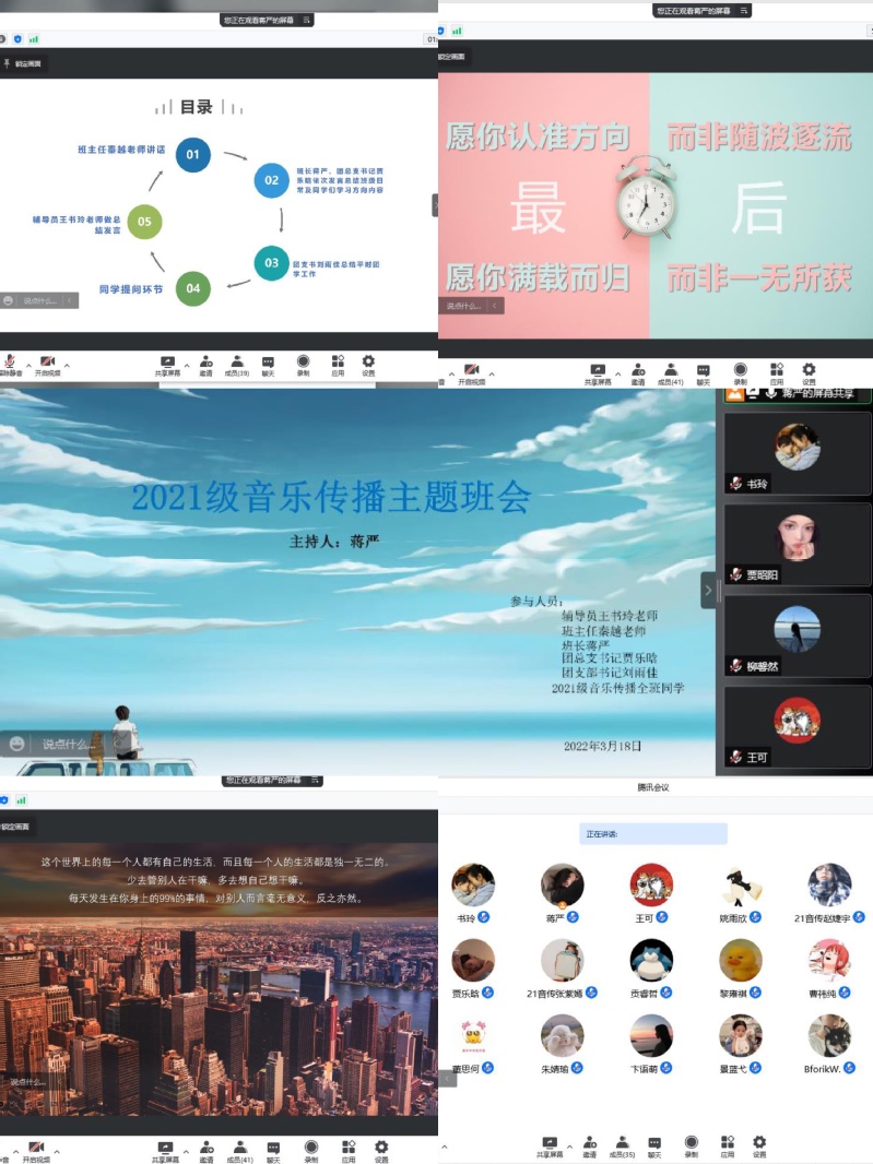 3-4月份,必一运动bsport体育16位班主任老师先后为4个年级分别召开了20场线上或线下主题班会。班主任组织召开主题班会旨在做好校园疫情防控常态下的教育管理工作,引导同学们提高政治站位、提升思想认识,关注同学们身心健康,指导大家做好线上学习和毕业相关事宜。公司党总支副书记于翊平、辅导员王书玲、张丽老师参加了部分班会。