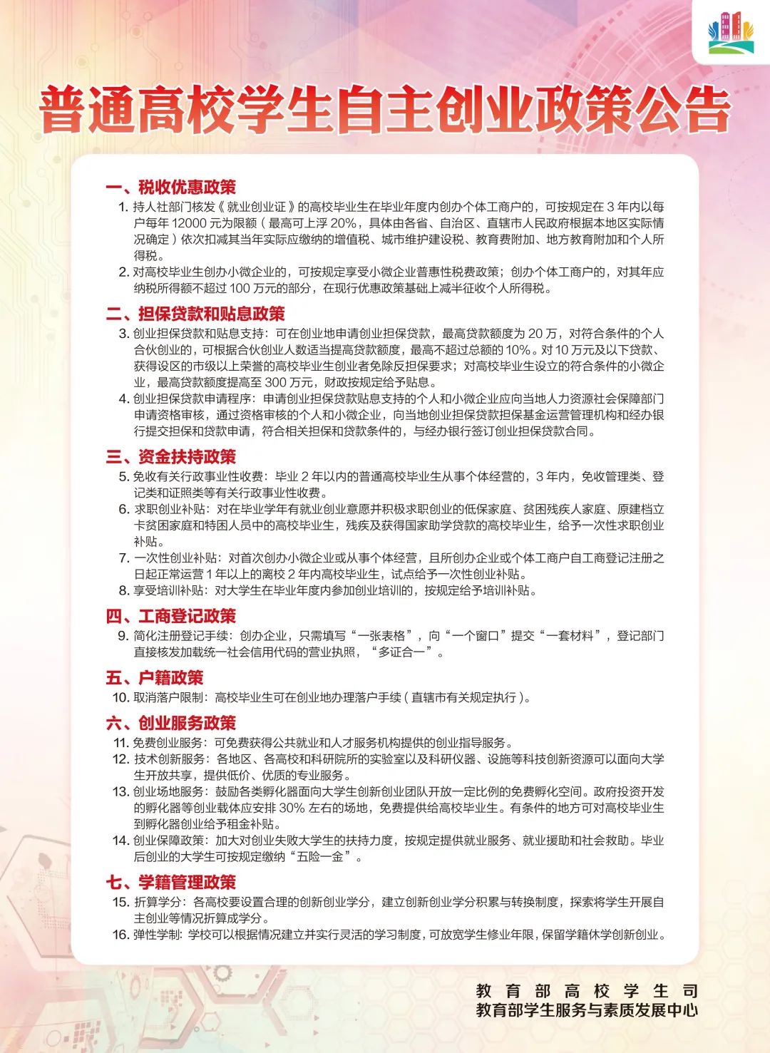普通高校员工自主创业政策公告