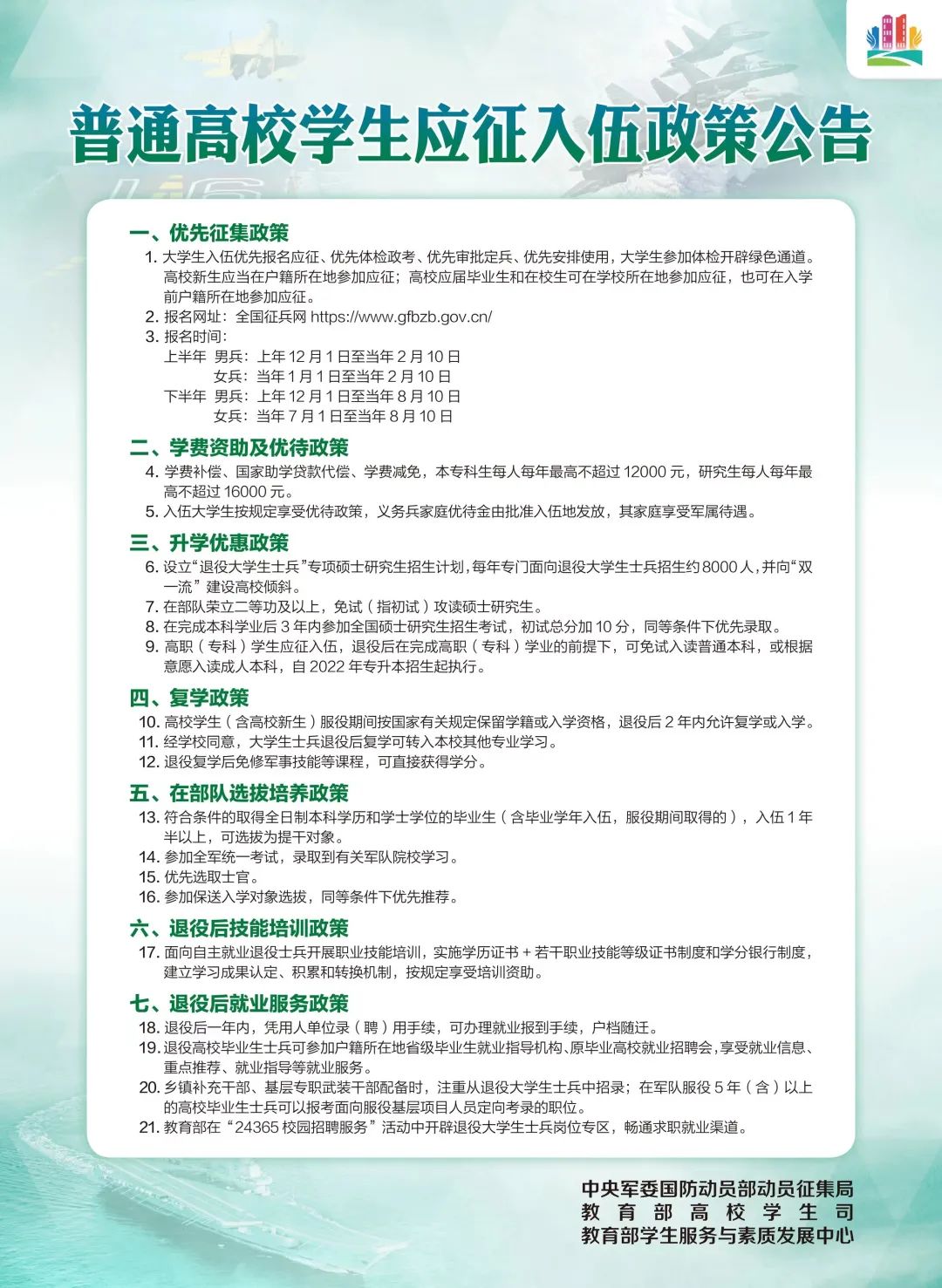普通高校员工应征入伍政策公告