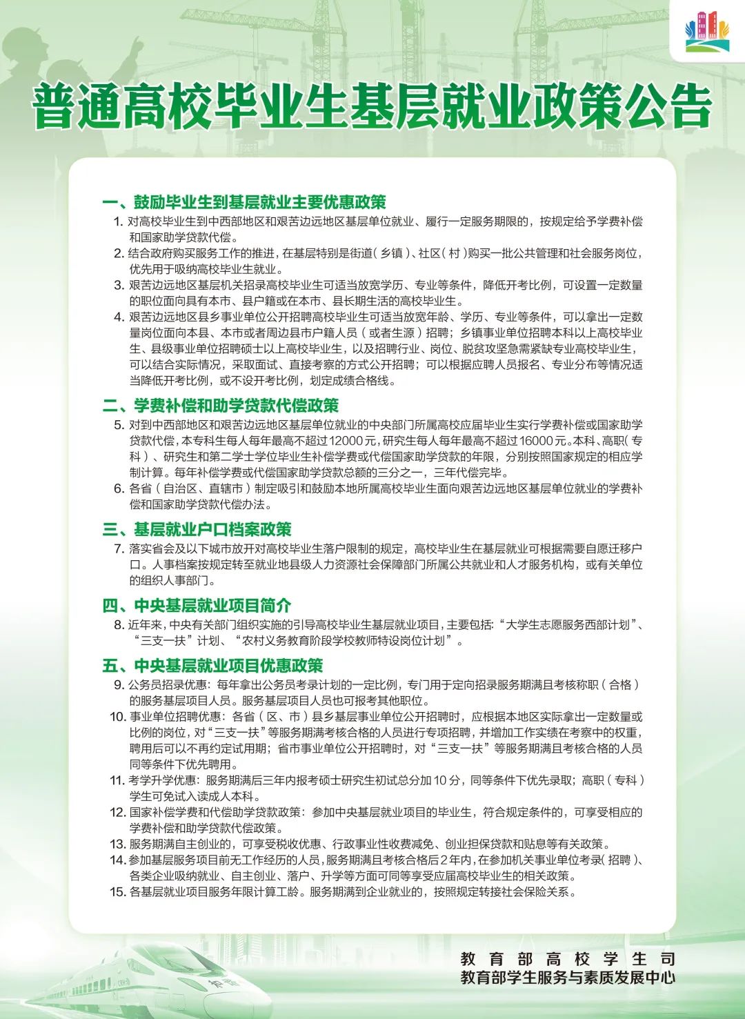 普通高校毕业生基层就业政策公告