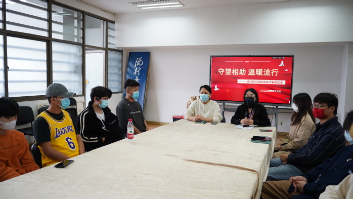 为充分了解校外公寓员工的学习生活及思想动态,在校学工处的组织指导下,4月30日必一运动bsport体育丁家桥公寓的2021级同学一起返回校本部学习交流。流行音乐公司党总支副书记于翊平,学工办主任、辅导员王书玲老师及高年级的员工代表与2021的同学一起,相约演艺大楼六楼会议室,召开了“守望相助 温暖流行”为主题的座谈会。