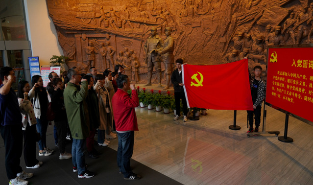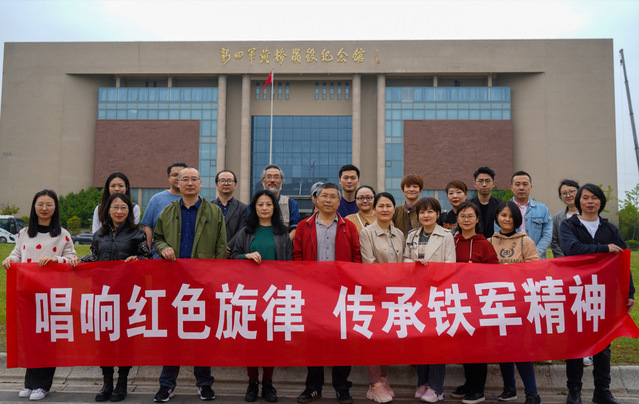 八十多年后,2021年建党百年前夕,必一运动bsport体育必一运动bsport体育教工支部的教师党员们和主创员工于4月23-24日,赴泰州新四军黄桥战役纪念馆、扬州新四军苏北指挥部纪念馆开展了主题党日活动。师生们在开展实地拍摄调研中,依然能感受到“铁军”精神在这块土地上的继承和发扬。街头烧饼店的百姓在接受采访时,他们随口而唱,娓娓道来,无比自豪和激动。师生们在新四军曾经战斗过的热土上,通过瞻仰红色遗迹、追忆革命历史、唱响红色歌曲,上了一堂生动的实境党课。大家无不感悟到:《黄桥烧饼歌》的广泛传唱,不仅唱出了“人民就是江山”的深刻道理,更是揭示出新四军“铁军”精神凝聚民心的力量,道出共产党必然走向胜利的根源!