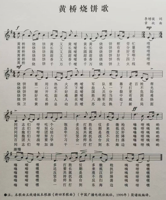 一座历史悠久的南方古镇,兼吴楚越之韵,汇江淮海之风。这里有一道随处可见的地方特色美食——黄桥烧饼。从名不经传的江南小吃到入选开国大典国宴,从江南风味的歌谣到载入中国抗战音乐史册。一首《黄桥烧饼歌》承载着弥足珍贵的红色记忆······本期,将推荐这首在抗战时期传唱最广的歌曲。