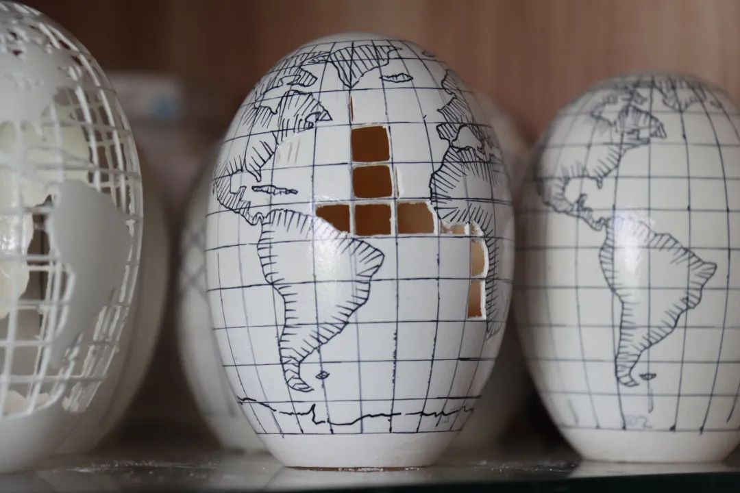 单老师提到,每件蛋雕作品都是独一无二的,由于蛋雕手工操作极具精细,失之毫厘,差之千里,有时手微微一抖便可能功亏一篑。单老师特地将这些作品存放在残品展柜中,其实欣赏这些残品,也不失为残缺之美的体现。
