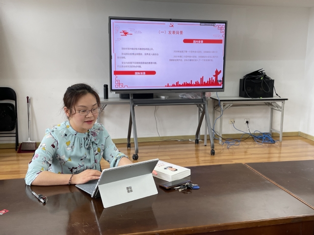 图2 教工支部书记冯玲领学《习近平谈治国理政》第四卷