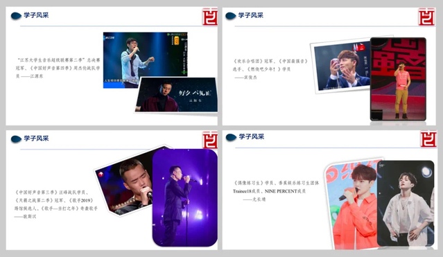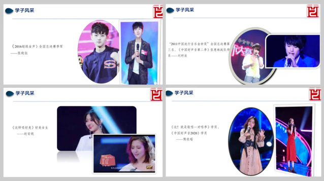 公司专业特色明显,以流行音乐演唱专业为例,有很多专业水平突出、演唱功底深厚的优秀毕业生代表,他们多次在国内大型综艺节目中展露风采。希望每一位同学都应该以优秀学长为榜样,学好专业技能,打好扎实基础,在舞台上绽放光彩。