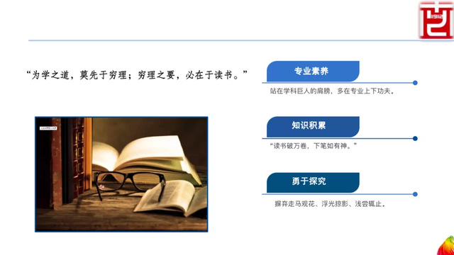 “为学之道,莫先于穷理;穷理之要,必在于读书。”大学之有别于中学,就在于学习瞄准了专业前沿、具有理论高度。希望大家立足于基础教育的铺垫、站在学科巨人的肩膀,多在专业上下功夫。