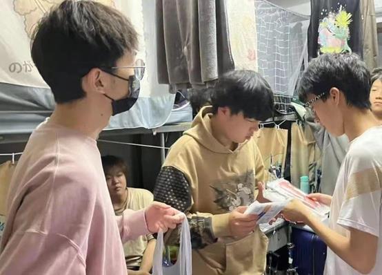 每天晚上,辅导员都会前往每一个宿舍,不仅询问同学们学习生活上的困难,为每个宿舍分发了疫情物资,还认真回答每个同学所提出来的问题,并且还会对同学们进行心理疏导,安抚同学们不安的心情。