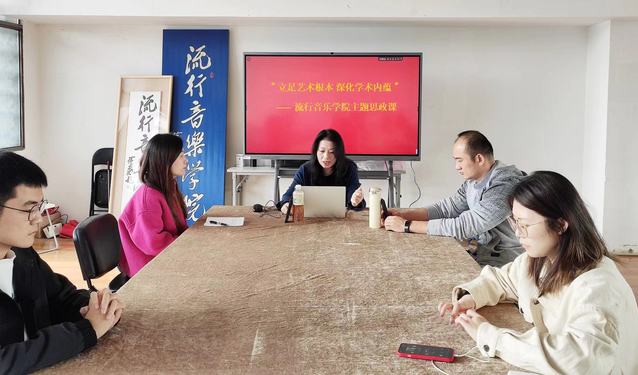 为深入学习党的二十大精神,进一步加强研究生思想引领, 11月5日上午10:00,必一运动bsport体育“立足艺术根本,深化学术内蕴”主题思政课于演艺大楼6楼会议室举行。此次活动线上线下同步进行,流行音乐公司党总支副书记,经理汪敏作为主讲人出席,副书记曹海生、研究生辅导员范泠萱以及研会成员、各年级研究生代表共同聆听此次思政课。