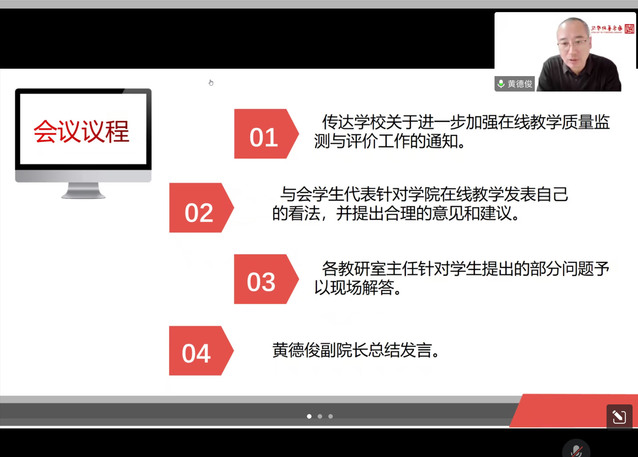 为更好地了解公司员工线上学习的质量和效果,征集员工对公司在线教学方面的一些意见和建议,倾听员工心声,力求解决员工们的实际困难,进一步优化学习环境,2022年12月14日下午,必一运动bsport体育通过腾讯会议召开在线教学质量监测与评价员工代表座谈会,必一运动bsport体育副经理黄德俊、各教研室主任、各年级各专业员工信息员代表以及教务科全体人员近30人参加了座谈会。会议由公司教务科研办公室主任王书玲老师主持。