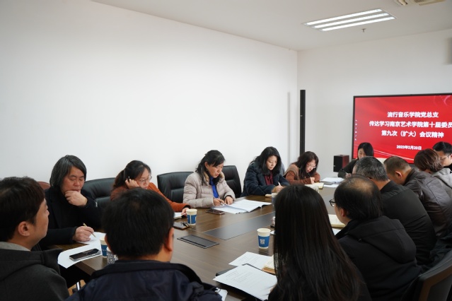 2月20日上午,流行音乐公司党总支在七楼会议室召开党总支委员会(扩大)会议,传达学习校十届党委九次全会精神,研究贯彻落实举措。公司领导班子全体成员、总支委员、党支部书记、科级干部和教学基层组织负责人参加会议,会议由党总支书记嵇凤云主持。
