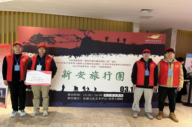 他们来到金湖的第一个志愿服务活动便是配合金湖县文化艺术中心开展儿童剧《新安旅行团》在金湖的首场演出。