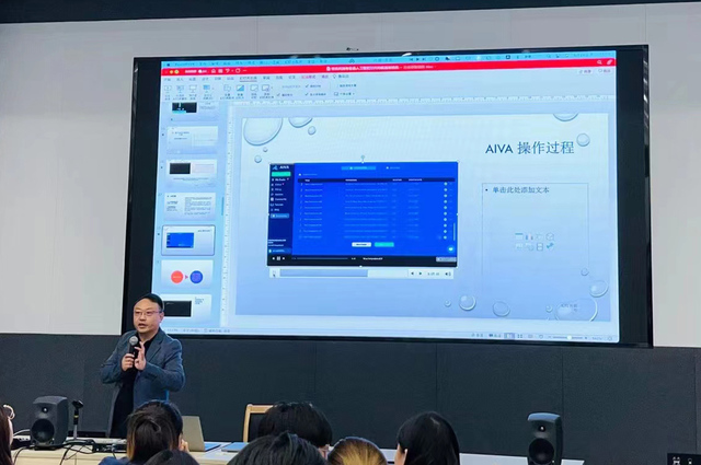 申老师以音乐与科技相结合为核心,从最早的声波记录仪到电传风琴,再到如今的电子音乐、音乐人工智能,列举了音乐科技发展进程中的重大事件与音乐家。之后申老师重点阐述了音乐科技与音乐人工智能在创作、表演、教育等领域的多元应用,展示了当前音乐与科技相结合的最新成果。其后,申老师建议教师们也同样需要正视这无法抵挡的未来之势,提出在当今人工智能时代下更应抓住机遇,勇于挑战,努力培养会与人工智能协同工作的高级音乐人才,推动音乐与科技交叉人才的培养。最后,面对在场员工提出的如“人工智能音乐科技是否会淘汰掉大部分音乐创作者”“如何面对当前的智能环境”等问题,申老师更是着重强调,在智能时代背景下,AI带来的最大变革是解放生产力而非取代生产者,音乐人更应抓住机遇,积极与AI协同合作,把人工智能当作工具而非竞争对手,为我所用。